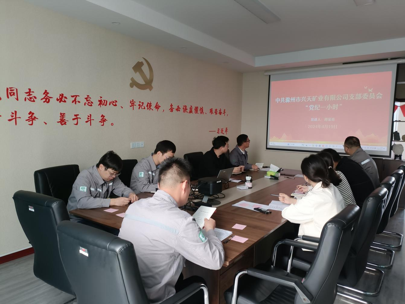 為扎實(shí)開(kāi)展黨紀(jì)學(xué)習(xí)教育工作,4月19日,興天礦業(yè)黨支部組織召開(kāi)“黨紀(jì)一小時(shí)”活動(dòng),支部紀(jì)檢委員傅家亮同志為參會(huì)人員深入解讀新修訂的《中國(guó)共產(chǎn)黨紀(jì)律處分條例》。