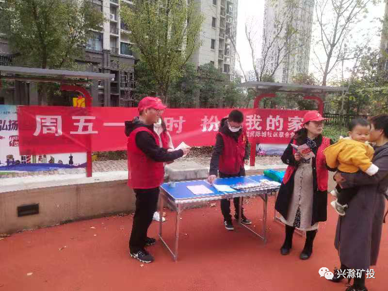 為進(jìn)一步鞏固文明城市創(chuàng)建成果,著力倡導(dǎo)文明生活習(xí)慣,11月20日,市礦投公司在發(fā)能國際城社區(qū)開展“周五一小時(shí),扮靚我的家”志愿服務(wù)活動?;顒又?,礦投公司的志愿者們身穿紅馬甲,通過發(fā)放環(huán)保手提袋、宣傳單頁的方式向社區(qū)居民宣傳環(huán)保知識、消防安全知識和滁州文明16條(2.0版)。引導(dǎo)居民提高文明、安全、環(huán)保意識。