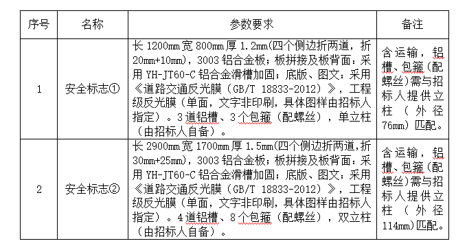 1. 本項(xiàng)目最高限價:安全標(biāo)志①為365元/塊,安全標(biāo)志②為2230元/塊,報(bào)價應(yīng)包含但不限于產(chǎn)品制作、運(yùn)輸及稅金等費(fèi)用,我司不再支付其他任何費(fèi)用。投標(biāo)報(bào)價不得高于最高限價,否則按無效標(biāo)處理。