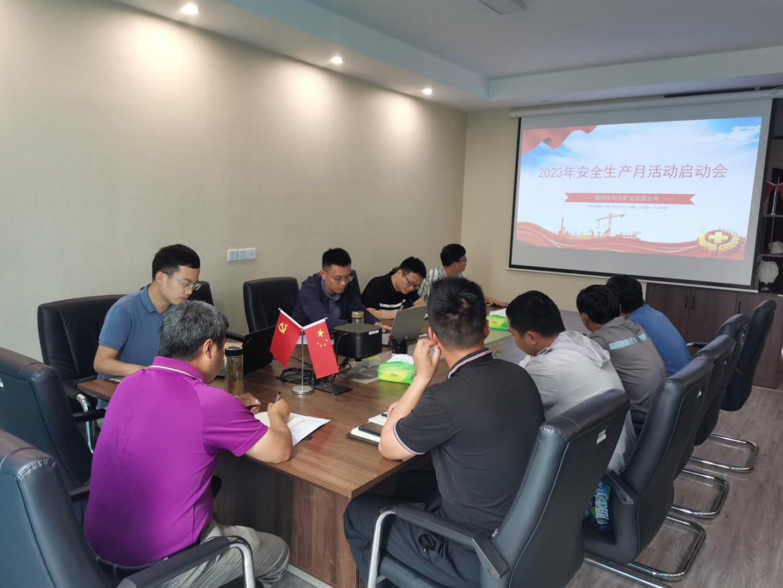 6月1日上午,興天礦業(yè)舉行2023年度安全生產(chǎn)月啟動會,公司全體員工及市礦投集團(tuán)安環(huán)部、實業(yè)公司、工程公司項目部代表參加會議。
